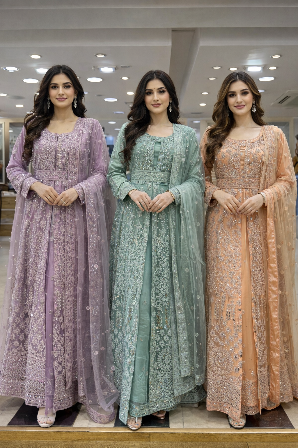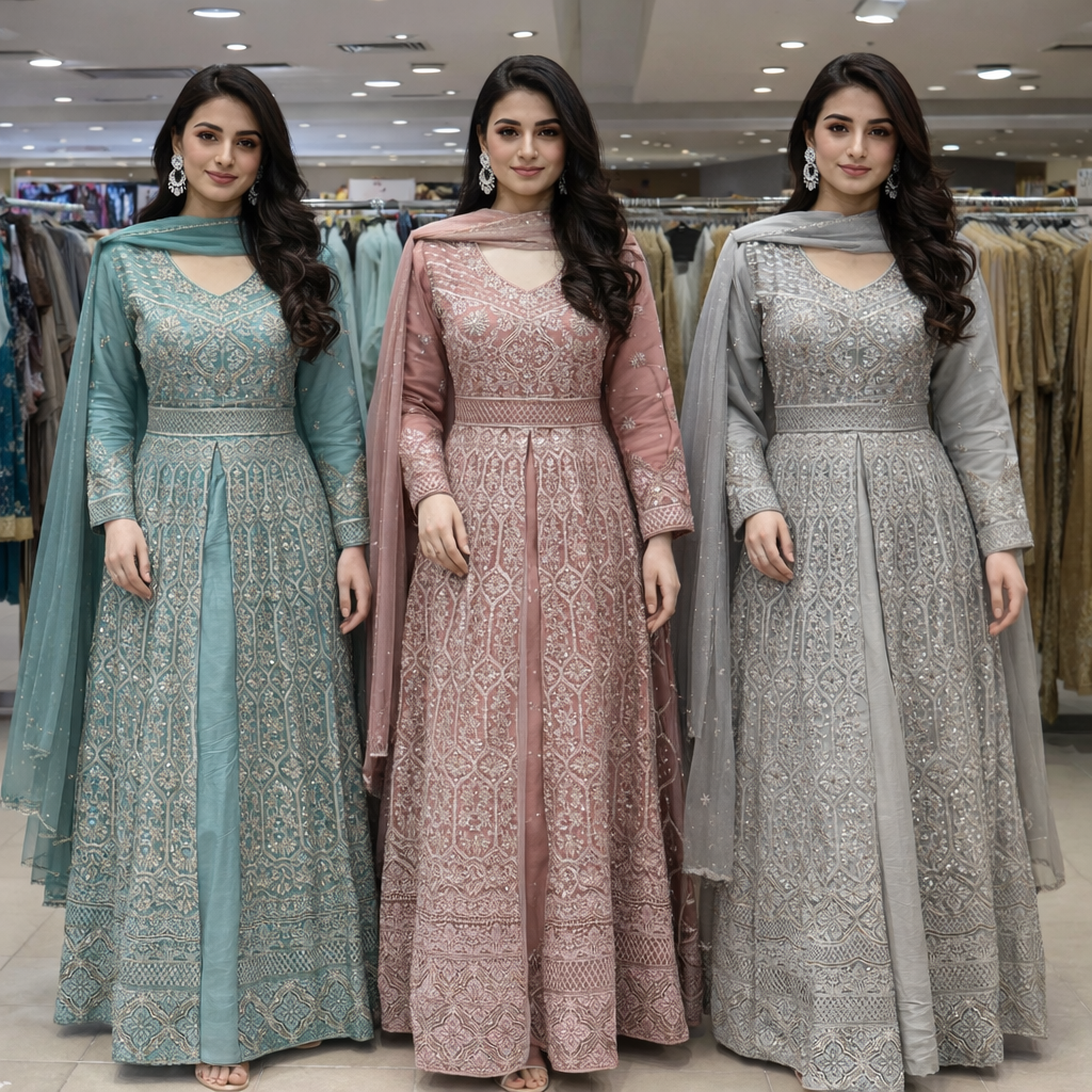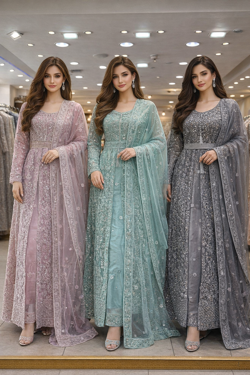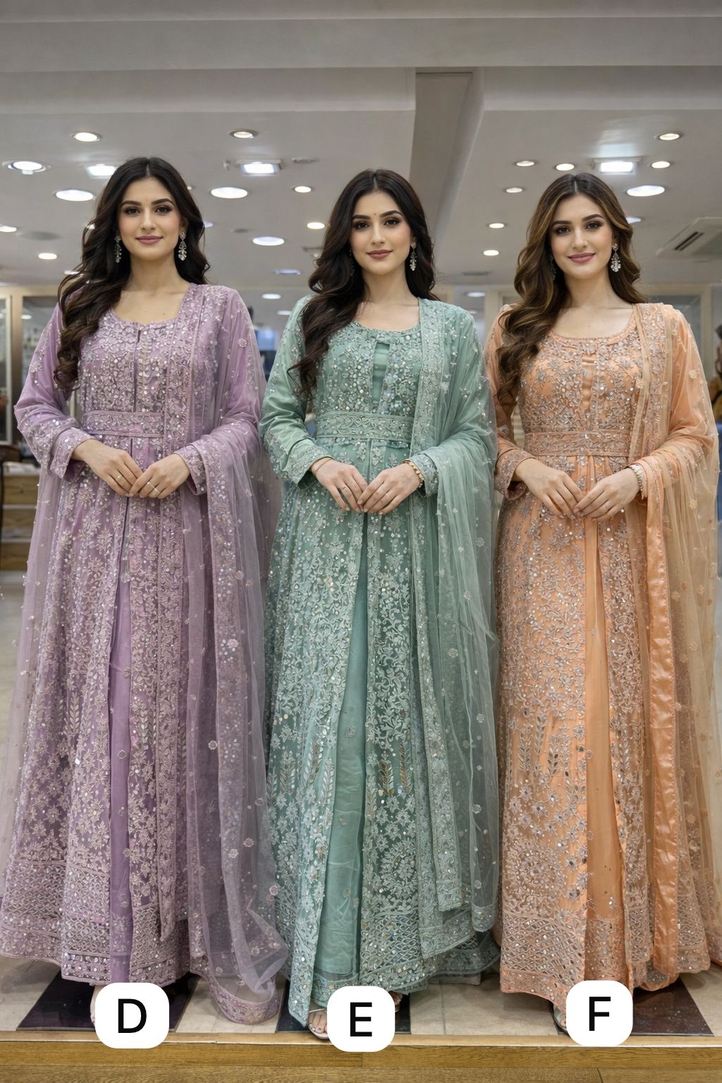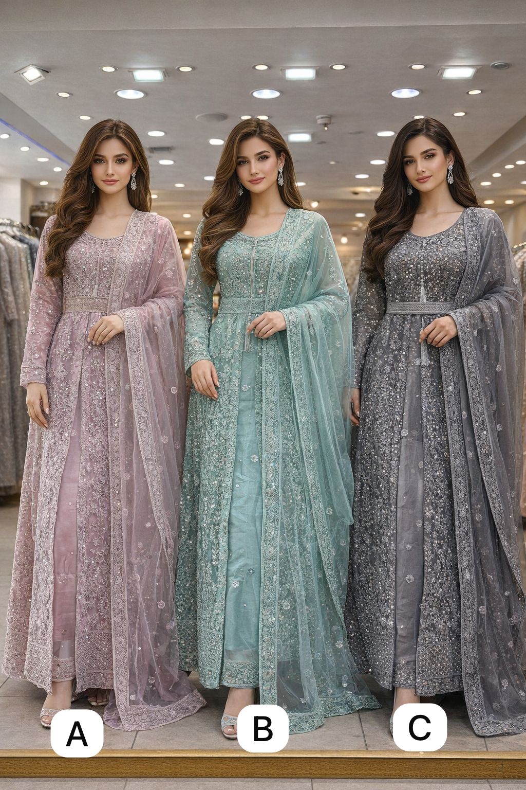 Shirt and duppata chiffon fabric. Full gold embroidery work with sequence and stone work