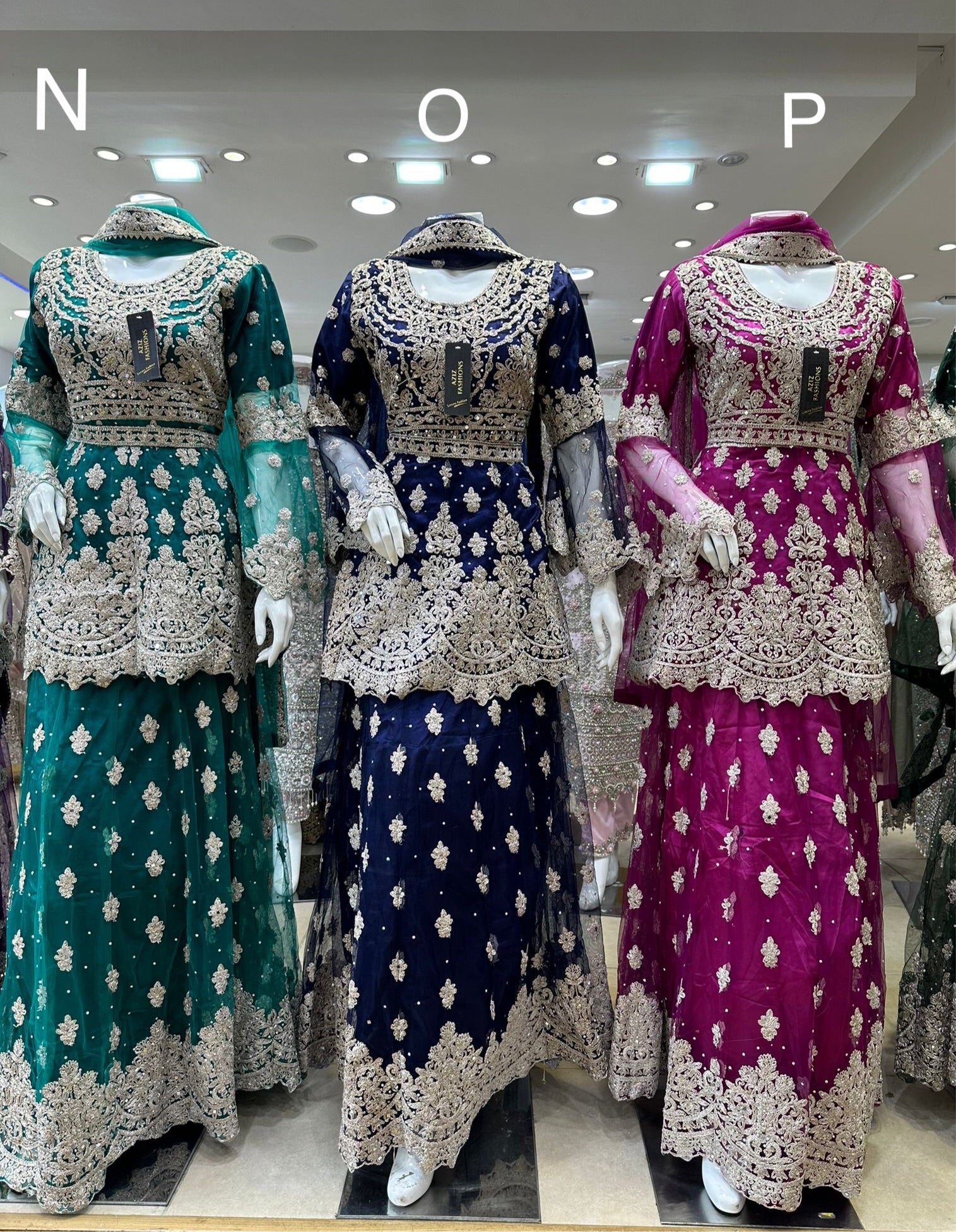 Silver and gold embroidery with sequence mirror and stone work.