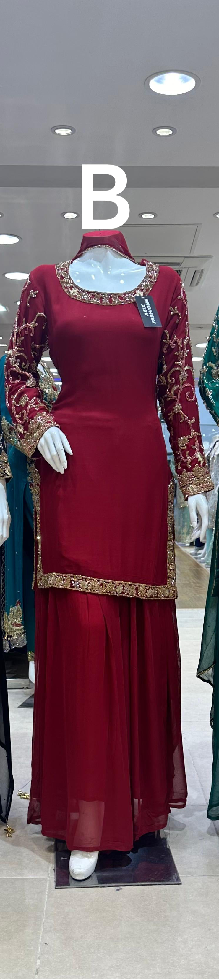 Embellishments: Complete gold embroidery adorned with sequins, mirrors, and stonework