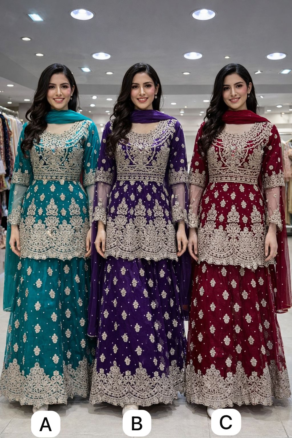 Shirt, Duppata and Lengha net fabric with fully satin lining