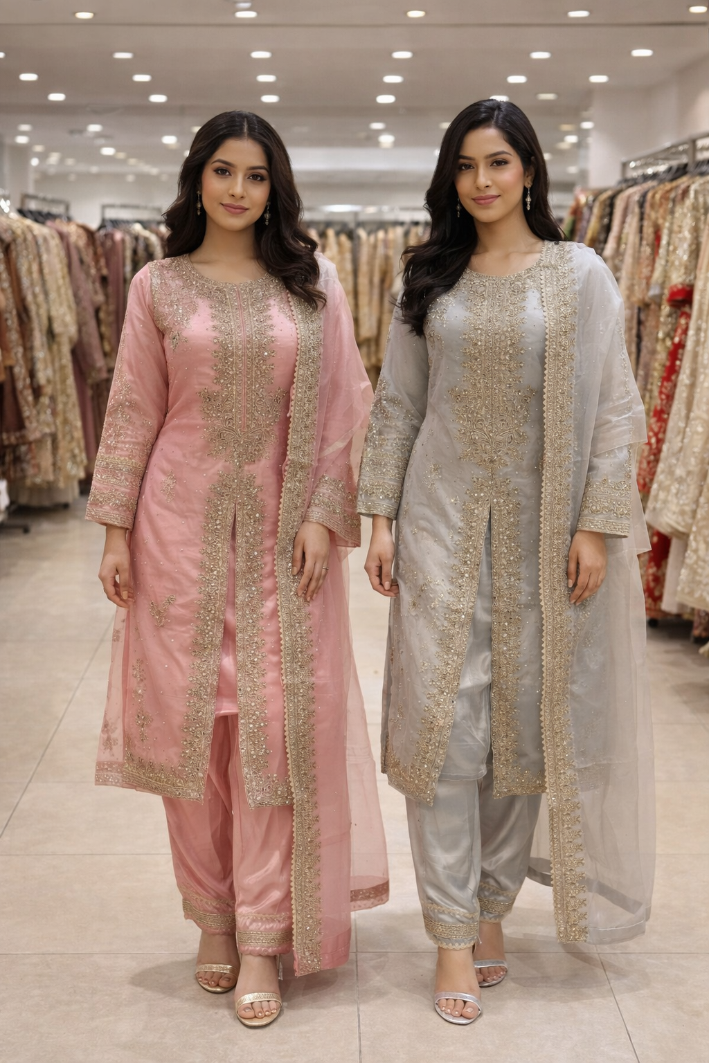 Organza fabric shirt and duppata.